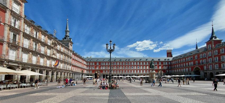 Madrid utcáin sétálgatva hamar feltűnik, hogy nincsenek hangulatos sikátorai, a belső terület sétálóutcái is meglehetősen szélesek. A szépen karbantartott, pasztellszínű házak jellemzője a sötétre festett franciaerkély. A város tereit is a látványosságok között említik, nem véletlenül. A Puerta del Sol sarkában áll Madrid jelképének, az eperfáról falatozó medvének a szobra. Ettől nem messze, a burkolatba ágyazva találjuk az ország közepét jelző nulla kilométerkövet. A Plaza de España vagy a Plaza de Cibeles mellett az apró, de annál szebb Plaza de la Villa és a hatalmas Plaza Mayor is a város ékességei közé tartozik.