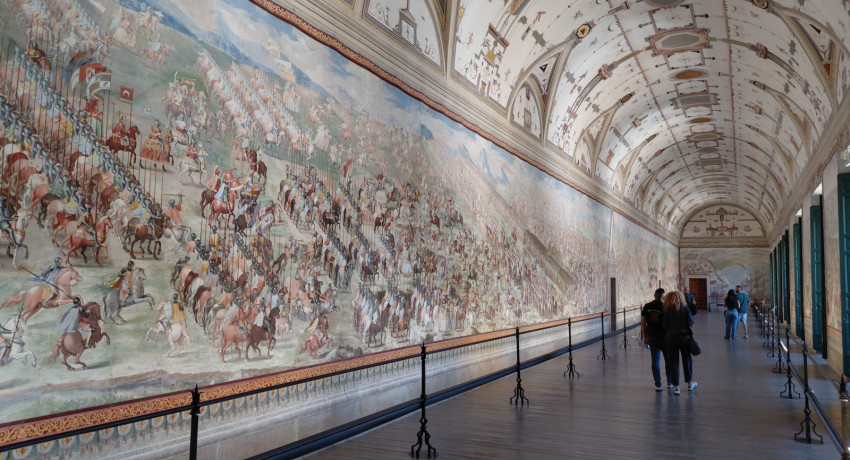 Az erődszerű épületet bejárva az ámulat mellett némi nyugtalanság is elfoghatja a látogatót. Az impozáns bazilika, a csodálatos, negyvenezer kötetes könyvtár, a műalkotások – Tiziano, Tintoretto, Cellini, El Greco, Velázquez, Veronese, Bernini művei – gyönyörködtetnek ugyan, ám a helyiségek és a folyosók valami baljós komorságot árasztanak magukból. Az egyik csarnok falát mind a két oldalon óriási csatakép díszíti. Jó néhány lépcsőn leereszkedve juthatunk el a királyok sírboltjába – ez ma spanyol nemzeti emlékhely –, itt nyugszanak a Habsburg- és a Bourbon-házi uralkodók. Az épület mellett találjuk a szerzetesek kertjét, melynek ösvényeit járva elgondolkodhatunk azon a sajátos paradoxonon, hogy a grandiózus alkotások létrejöttéhez egyszerre kellett mérhetetlen hatalom, óriási vagyon és elmélyült hit.