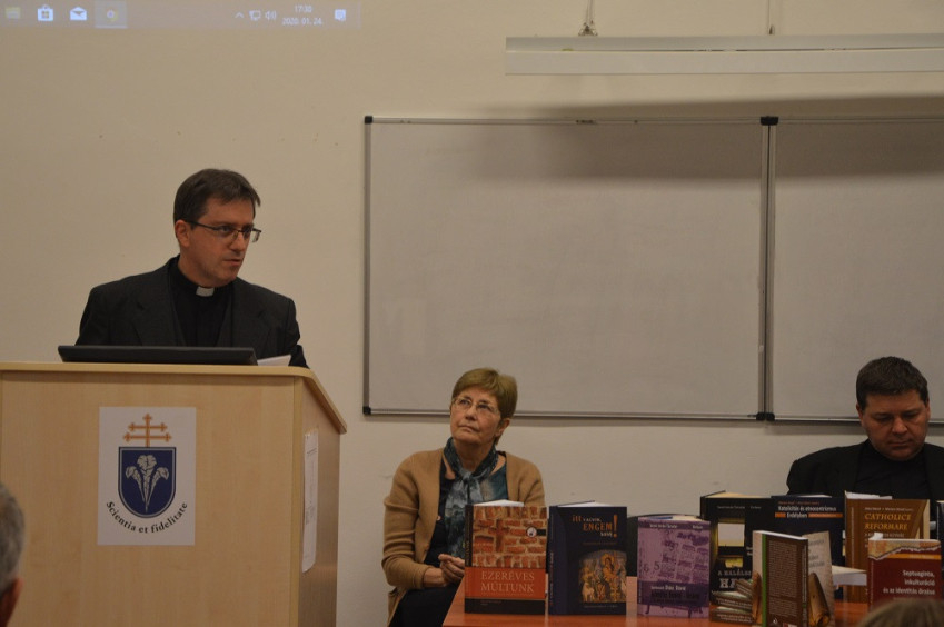 Gárdonyi Máté, a PPKE HTK egyháztörténész professzora a Catholice reformare kötetet, Tóth Tamás a Magyar Katolikus Püspöki Konferencia titkára pedig az Ezeréves múltunk és a Megmenekültem az oroszlán torkából című köteteket ismertette.