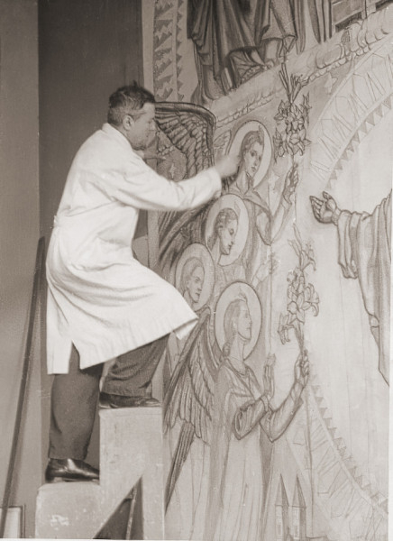 Leszkovszky György a Szent József-oltár festése közben 1943-ban