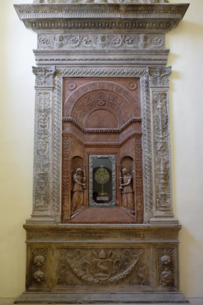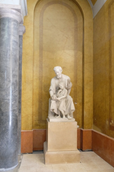 Damkó József Máriát és Szent Józsefet ábrázoló – korábban a főhajó középső pillérei előtt álló – márványszobrait a főbejárathoz közel, a karzat alatt, egymással szemben helyezték el.