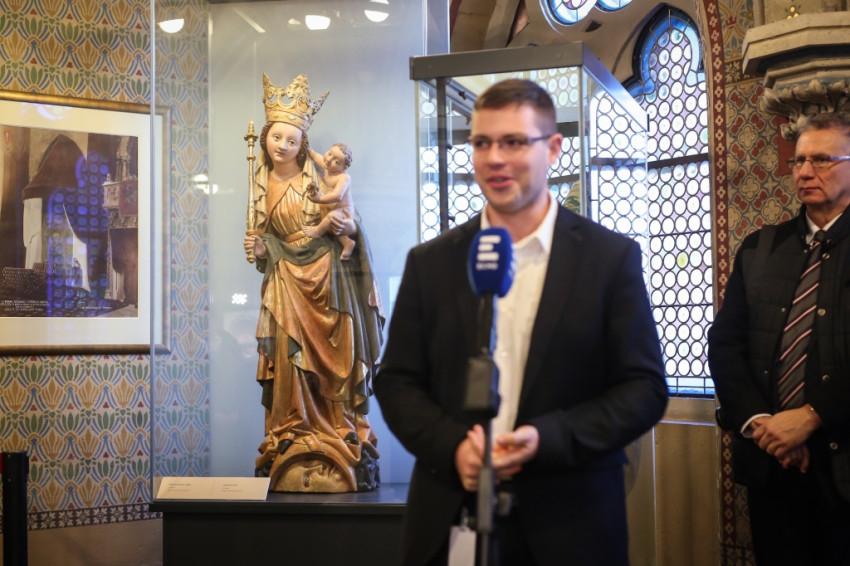 A sajtóeseményen Prokopp Mária mutatta be a közel hatszáz éves szobrot, amelynek részletes története, hazai és külföldi analógiákkal való összevetése, elemzése hamarosan külön kiadvány formájában is napvilágot lát. A művészettörténész utalt rá, hogy a gótika a romanika „fönségeszményével” szemben az emberi vonásokat és az érzelmeket hangsúlyozza. Kiemelte, hogy a magyar művészet az eddigi vélekedésekkel szemben Szent Istvántól a mohácsi vészig Európában nem „utánzó”, hanem sok tekintetben nagyon is önálló és „kezdeményező” volt. A 14. század végén, a 15. század elején az internacionális gótikát vitte tovább és gazdagította a „budai műhely” is.