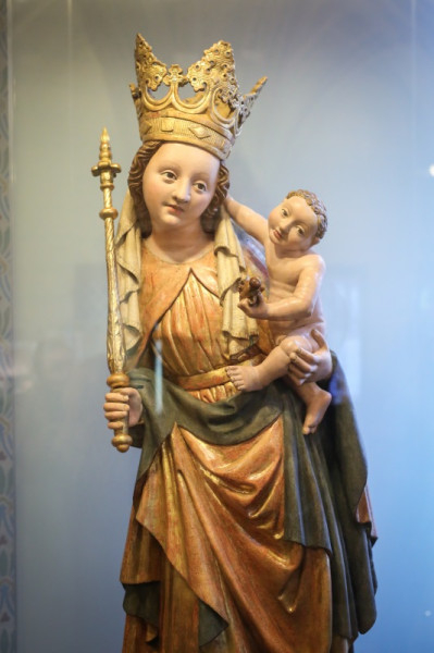 Galambos Éva a restaurálás fázisait és eredményeit vázolta fel rövid előadásában. A gyermek Jézus a Madonnával egyetlen hársfa tömbből faragott alkotás. A szoborra számos történeti réteg rakódott, éppen ezért volt szükség a hagyományos és modern restaurátori vizsgálatok együttes alkalmazására. A szobor felépítéséről pontos képet a helyreállítás során készített röntgenfelvétel ad. Segítségével megtalálták többek között az eredeti festéknyomokat. A megvalósítás magas fokú szobrászmesteri tudásról árulkodik, így feltételezhető, hogy egy jelentősebb mester műhelyében készült.