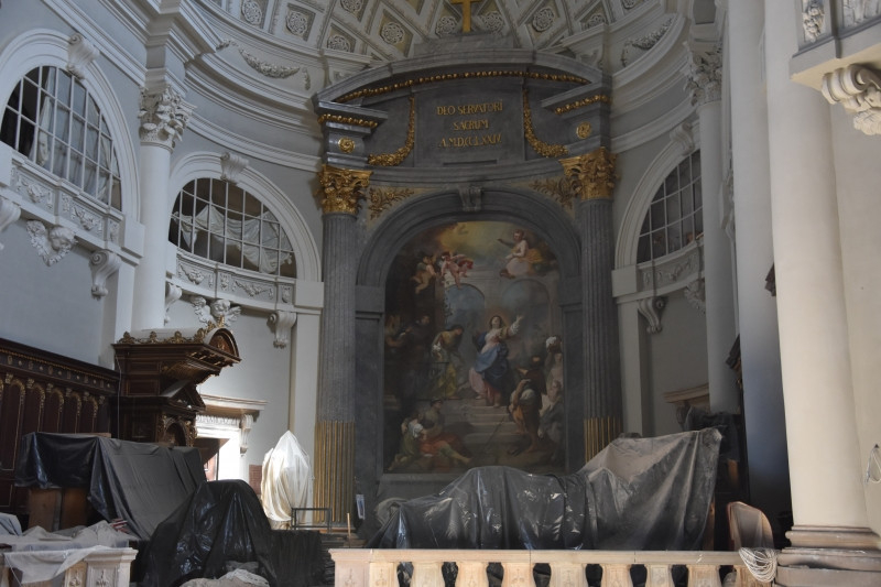A váci Nagyboldogasszony-székesegyház felújítása 2021 tavaszán kezdődött meg, azóta a munkálatok folyamatosan zajlanak. A sajtó munkatársainak korábban már volt lehetőségük a munkafolyamatokba bepillantást nyerni, a mostani alkalom azonban különleges volt, hiszen kész állapotban tekinthették meg a helyreállított kupolafreskót és az eredeti barokk mintára készült architektúrafestést, a restaurált főoltárt, valamint tájékoztatást kaphattak a további tervezett munkálatokról.