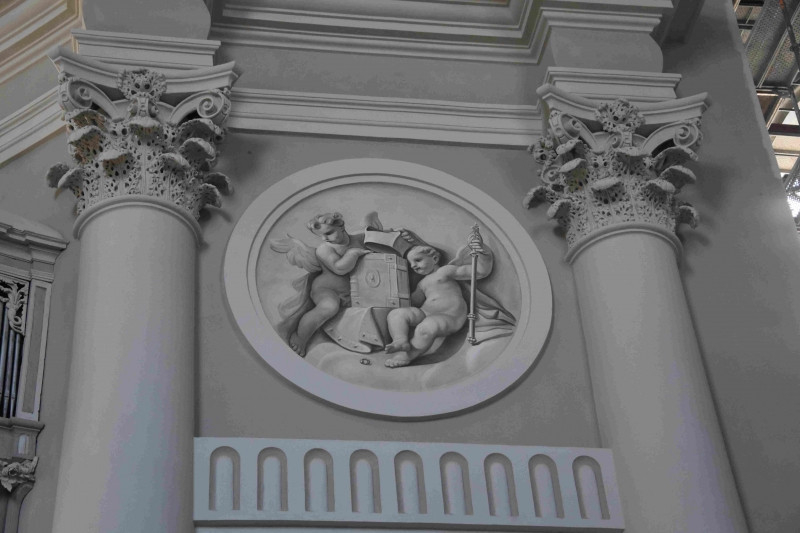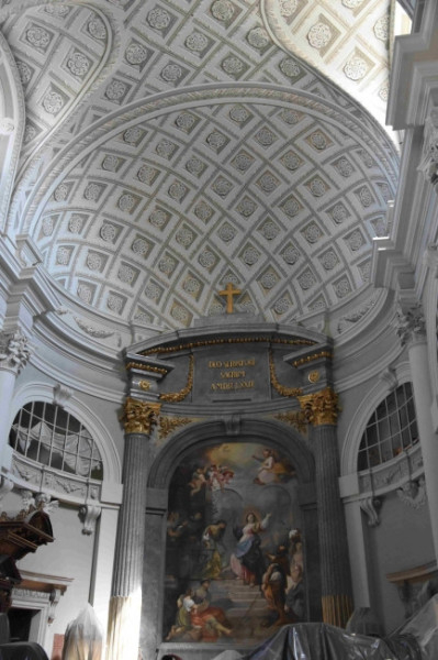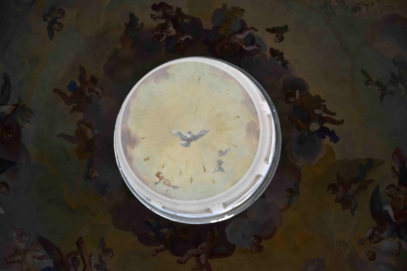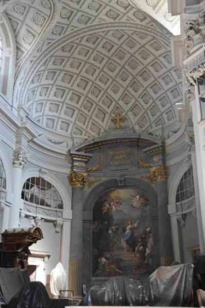 Ennek megfelelően a restaurátorok lemosták, illetve megtisztították az 1944-ben készült falfestést, és helyreállítják az eredeti, 18. századi rozettás díszítő falfestést. A szentélyben is megtörtént az eredeti díszítő architektúrafestés visszaállítása, az 1944–47 között készült Kontuly Béla-kép elfedésével. A freskó még Pétery József püspök kérésére készült el, aki 1942-től volt az egyházmegye főpásztora. Többek között egy 19. századi földrengés következtében akkor a belső tér megújítására mindenképp szükség volt.