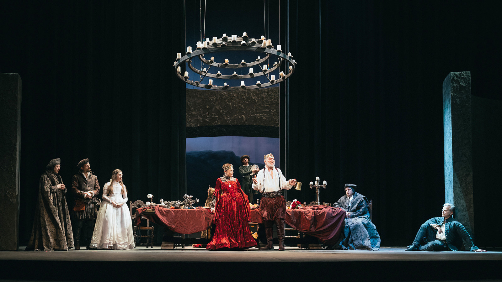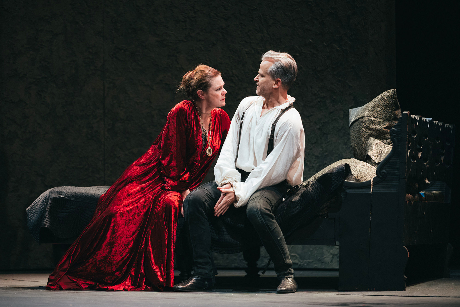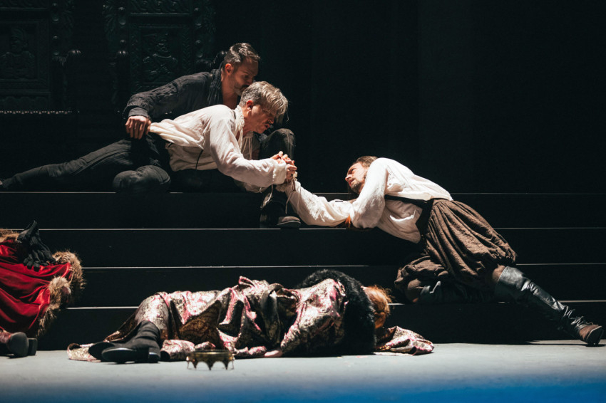 A nagyközönség Haumann Mátét elsősorban az Oppenheimer című filmből ismerheti, Christopher Nolan remekművében Szilárd Leót játszotta. Ezúttal ő formálja meg a címszereplőt. Első megszólalásánál Haumann hangszíne még kicsit furcsán hat, ám miután megbarátkoztunk vele, alakítása egyre meggyőzőbb lesz. Látszik, hogy amennyire csak lehetett, belemerült a szerepébe, átéléssel teli játéka magával ragadja a nézőt. Claudius királyként Gáspár Tibort láthatjuk, az ő alakítása is kiváló, hatásosan formálja meg a hatalom megszerzéséért és megtartásáért mindenre képes uralkodót. Haumann és Gáspár nemcsak bejönnek a színpadra, hanem jelen is vannak. A főbb szereplők közül a Gertrudot megformáló Györgyi Anna és a Polonius bőrét magára öltő Viczián Ottó is nagyszerűen játszik. Azt külön érdemes megjegyezni, hogy szinte minden színészt jól lehet hallani – annak ellenére, hogy a trendi hangosítást mellőzték az alkotók –, ami napjaink színjátszásánál egyáltalán nem magától értetődő. Az egyetlen kivételt az Opheliát játszó Kiss Anna Gizella jelenti, akinek a hangja és az alakítása is erőtlen.