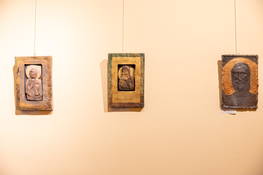 Mindig is megérintették az evangéliumi jelenetek, melyeket szavak nélkül tud elbeszélni a műveivel, a műveiben. A keramikon szót nem ő hozta létre, de örült, hogy ezzel jól meg tudja nevezni, mi is az a műfaj, amelyet magáénak érez. A véletlenszerűen születő rakus felület ajándék, amelyhez alázat kell – mi megtesszük, amit tudunk, de utána el kell engednünk… Rendhagyó módon törött tágyakat is hozott a kiállításra – amelyeket a japán kincugi technikához hasonló módon ragasztott össze. Közel áll hozzá a kincugi szemlélete: foglalkoztatja,