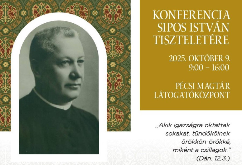 A Sipos István-emlékkonferencián magyar és külföldi meghívottak, köztük Kuminetz Géza, a Pázmány Péter Katolikus Egyetem (PPKE) rektora, továbbá a PPKE Hittudományi Kara, a Pécsi Tudományegyetem Jogi Kara, a Pécsi Püspöki Hittudományi Főiskola tanárai és a Pécsi Püspöki Bíróság egyházjogászai előadását hallhatják az előzetesen regisztrált résztvevők.