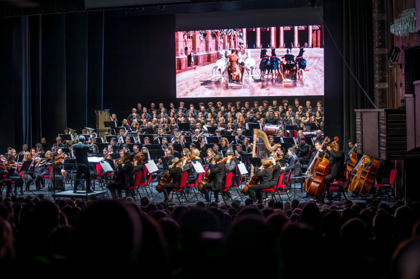 A koncert háziasszonya a Jászai Mari-díjas Ivancsics Ilona volt, aki a zeneművek előtt a filmekhez kapcsolódó gondolatokkal és kérdésekkel segítette a befogadást, melyek után a közönség kivetítőn követhette a zenével illusztrált jeleneteket, összevágott epizódokat.