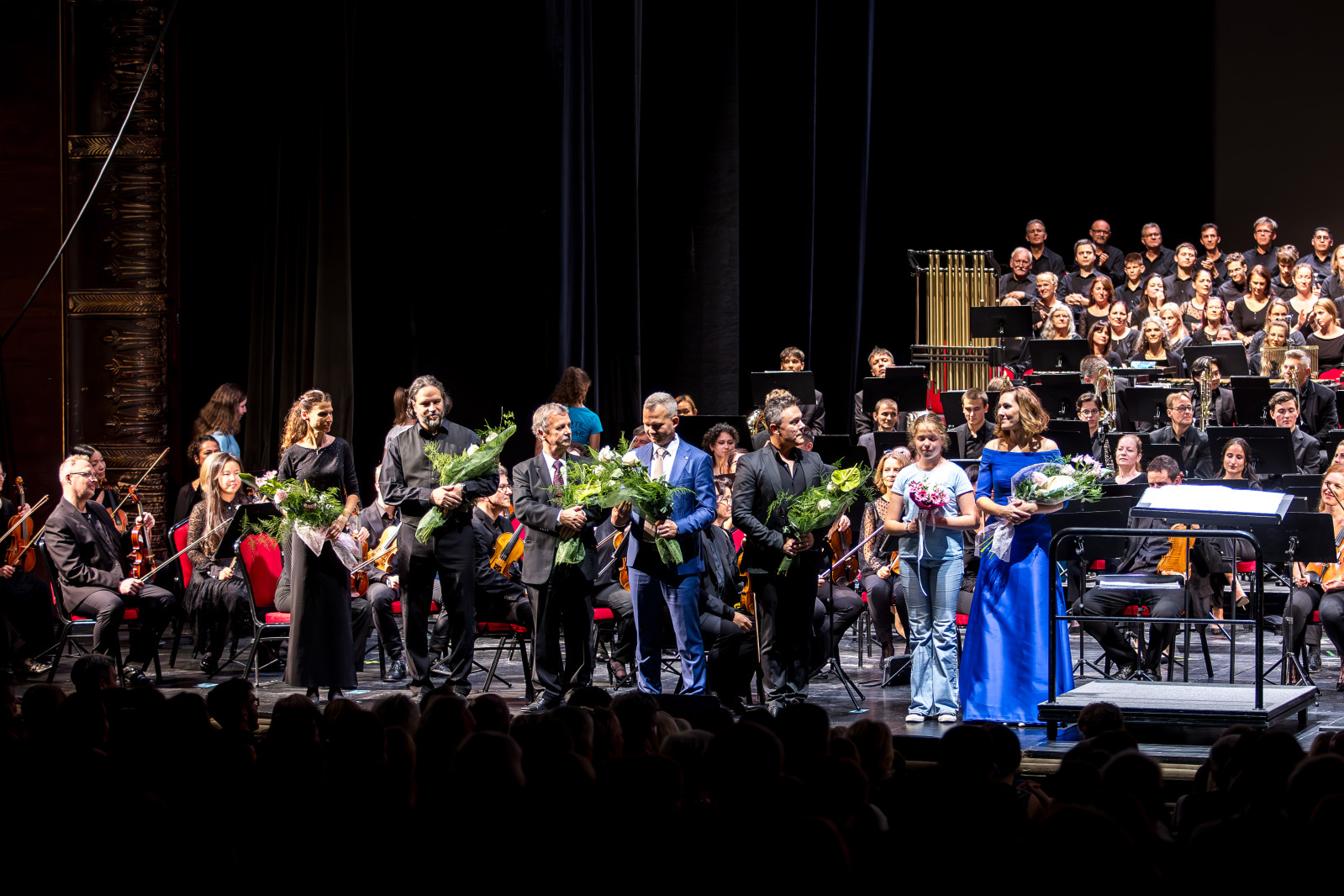 A koncert végén a szólistákat és a felkészítő karnagyokat (Sapszon Borbála, Tóth Márton –Kodály Zoltán Magyar Kórusiskola; Ludmány Emil és Bánfi Balázs – Weiner Leó Katolikus Zeneművészeti Szakgimnázium) virággal köszöntötték.