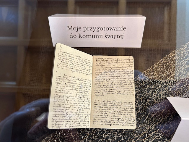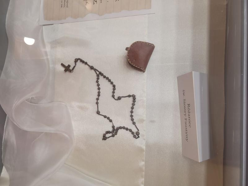 Fausztina nővér naplójának eredeti kézirata mellett a kiállításon látható volt az az ezüst jegygyűrű, amit Jézus jegyeseként, az örökfogadalomkor kapott és a rózsafüzére is.