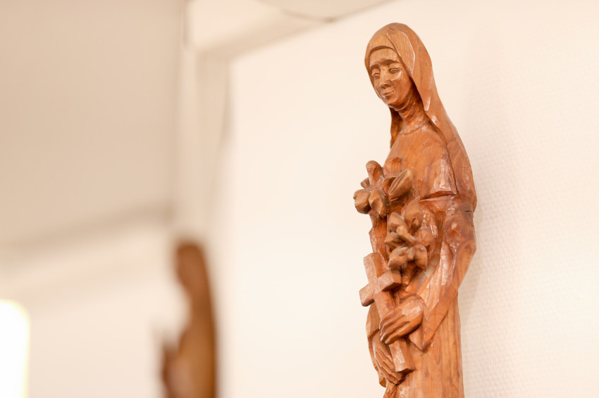 A nyolcvanas években megújított kápolna liturgikus terének művészi gazdagságát B. Kopp Judit (1943–1995) kiemelkedő alkotásainak köszönhetjük. A szobrászművész a magyar monumentális faszobrászat egyik meghatározó alakja volt, munkássága több mint harminc templomban él tovább.