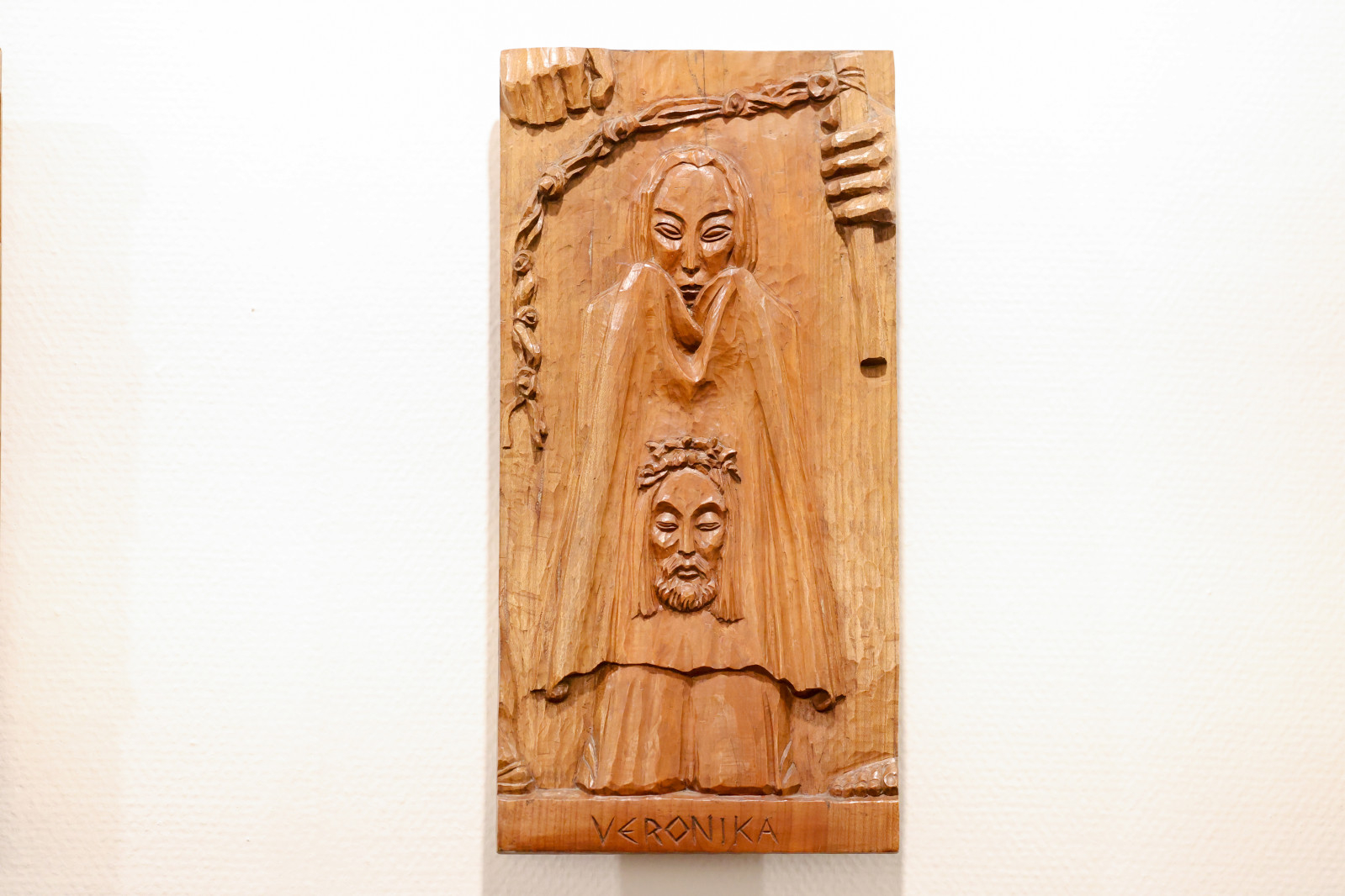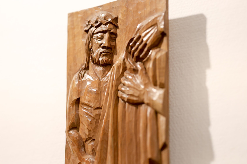 A Karolina úti kápolnában keze munkája az oltár és az olvasóállvány domborművei, az oltárszekrény, a keresztút stációi, a főoltár mögötti falon elhelyezett fafeszület is – a hit, az áldozat és a megváltás csendes tanúi.