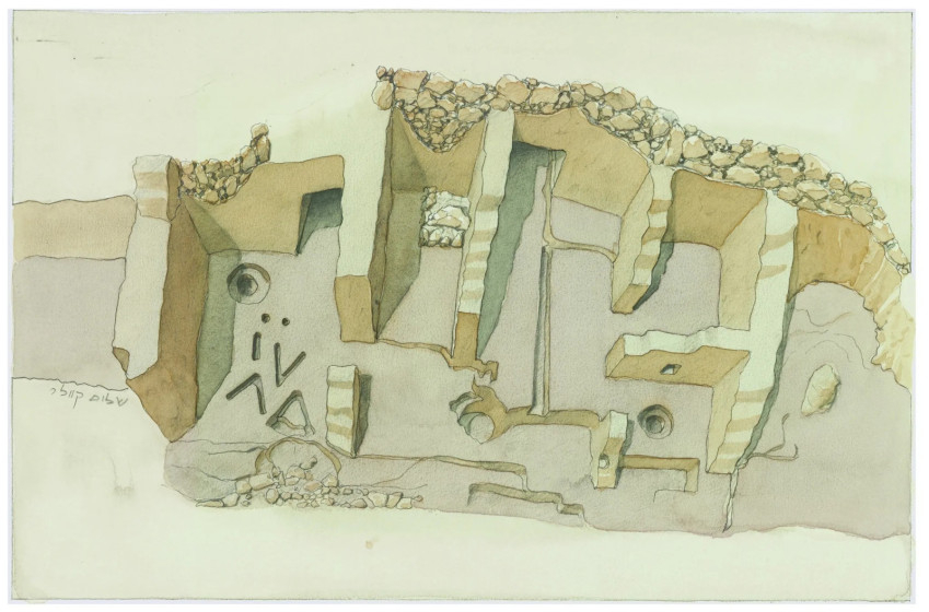 Az épület mellett a sziklába vájt barlangban az időszámítás előtti 8. századra datálható tárgyakat találtak: például főzéshez használt edényeket, ősi héber feliratok töredékeit tartalmazó korsókat, szövőszékhez használt súlyokat, szkarabeuszokat. De találtak dekoratív motívumokkal díszített pecséteket, illetve gabona őrlésére használt köveket is.