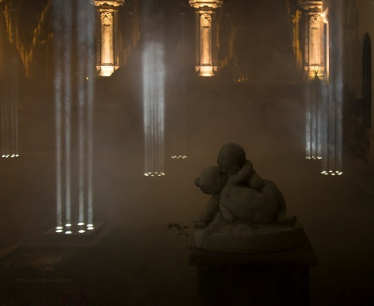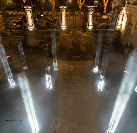 A Porticus 3.5-öt korábban többször is bemutatták már itthon és külföldön, a mostani alkalmat a helyszín, Róma, a konkrét tér, a Falconieri palota kontextusa teszi különlegessé. A palota antik oszlopait egyszerre valós és immaginárius térré egészíti ki az alkotás. Az ókeresztény bazilikastruktúrát idéző fehér fényoszlopok a múlthoz való viszony, a kulturális emlékezet, a kulturális identitás, a nyugati kultúra közös gyökereinek kérdéseit vetik fel. A római bemutató azért is egyedi, mert az Anima Sound System erre az alkalomra készített, a szakrális zene és a kortárs elektronika, a techno mintázataiból szőtt hanginstallációja kíséri.
