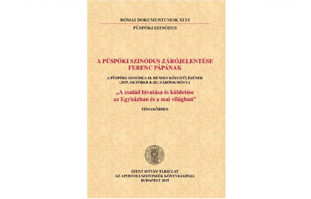 (A püspöki szinódus zárójelentése a családról Ferenc pápának. A püspöki szinódus 14. rendes közgyűlésének (2015. október 4–25.) záróokmánya „A család hivatása és küldetése az Egyházban és a mai világban” témakörben. Római Dokumentumok 46. Szent István Társulat, 100 oldal, 1300 Ft. Fordította: Tőzsér Endre)