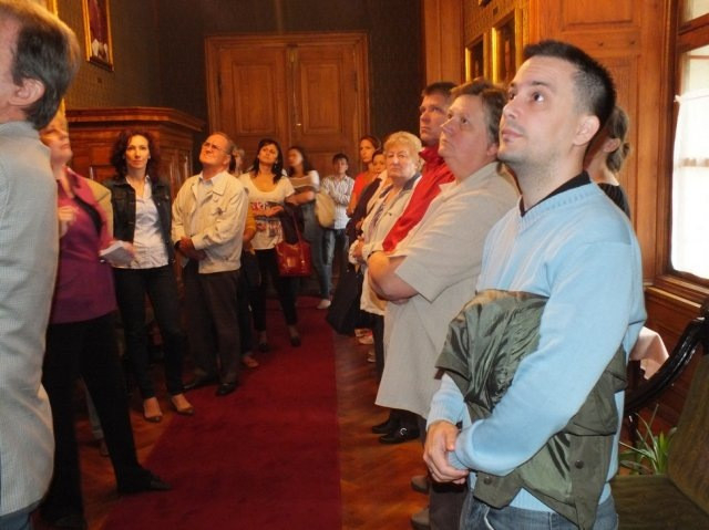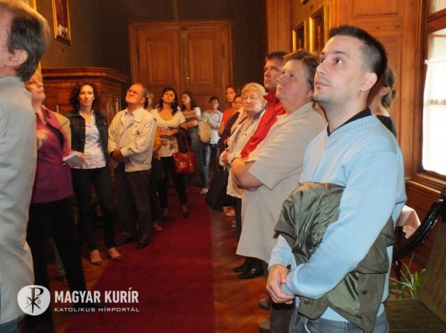 A 40 fős hallgatóságot Simon Katalin gyűjteményvezető kalauzolta a látogatás során, mely a püspöki palotában kezdődött. A palota és a szemináriumi épület a 18. század második felében épültek fel Szily János, az egyházmegye első püspöke főpásztorsága idején.