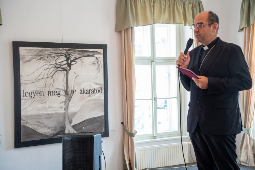 Székely János megyéspüspök nyitotta meg a tárlatot. Kiemelte: Tóth Csaba szakrális képeket alkot. Tudja azt, amit az ókori, középkori emberek evidens módon tudtak: az igaz, a jó, a szép, a szent elválaszthatatlanok. Emellett figurális alkotásokat láthat tőle a közönség, miközben a mai modern művészek elsősorban nonfiguratív alkotásokat készítenek. Pedig a figurális ábrázolásban benne van az érték, hogy az ember óriási kincs. Az univerzum legfontosabb teremtménye az ember.