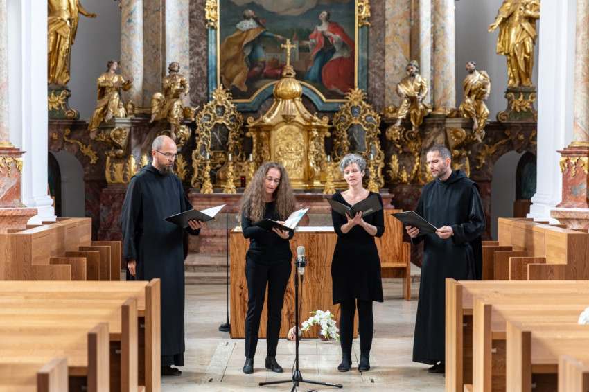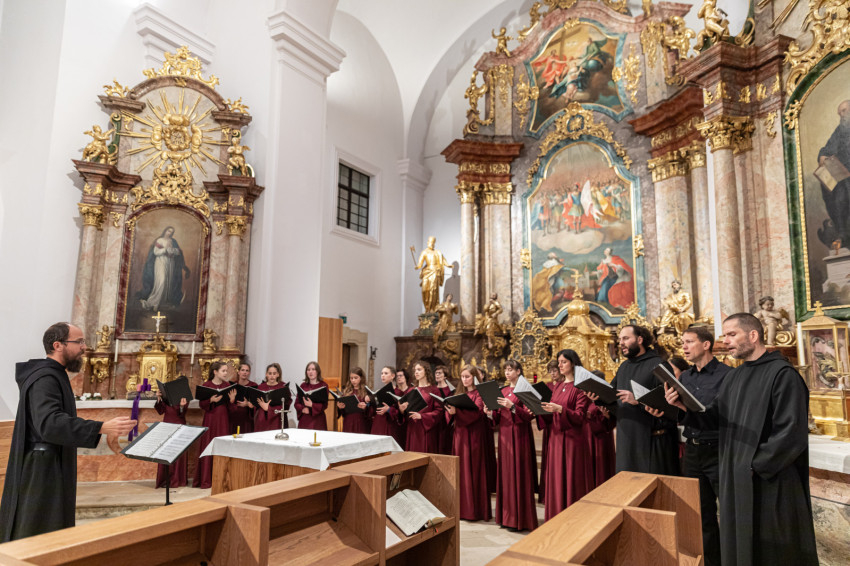 Baán Izsák OSB, bencés perjel, aki maga is vezetője, tevékeny résztvevője énekegyütteseknek, a komlói Kodály Zoltán Ének-Zenetagozatú Általános Iskolában Tóth Ferenc Liszt-díjas karnagy vezetésével került közel a zene világához. Trombita szakon járta ki a komlói zeneiskolát, középiskolás és egyetemi évei alatt különböző együttesekben és kórusokban énekelt. 2001-től a bencés rend tagja, római diákévei alatt a Szent Anzelm Prímás Apátság gregorián scholájának volt tagja és magiszter-helyettese. 2007-től a bakonybéli Szent Mauríciusz Kórus karnagya, az Ausculta kvártett tagja, a bakonybéli apátság zenei életének motorja és szervezője. 2019-től pedig a szerzetesközösség elöljárója is.