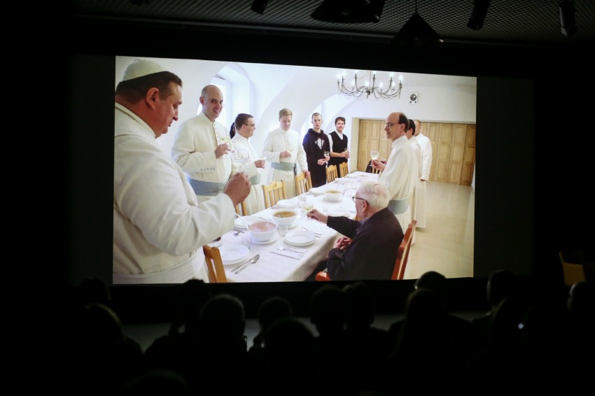 A film bemutatása után Stumpf Kata beszélgetett az alkotókkal és a premontrei szerzetesekkel. Boldvai Márton Bertalan, a csornai prépostság perjele elmondta: közvetlenül a helyszíni forgatás előtt volt benne félelem, hogy ha igent mondanak, támadásoknak lesznek kitéve, de végül legyőzték a rossz érzéseiket. Kitért arra is, hogy nem kérdezték meg a fiatalokat, hogy honnan, milyen családból jöttek, nem volt prekoncepciójuk. Gozsda T. István felhívta a figyelmet arra, hogy ehhez még csak hasonló filmes vállalkozás sem volt soha, ezért izgultak, vajon mi sül ki ebből... Az alapszituáció a spontaneitás volt.