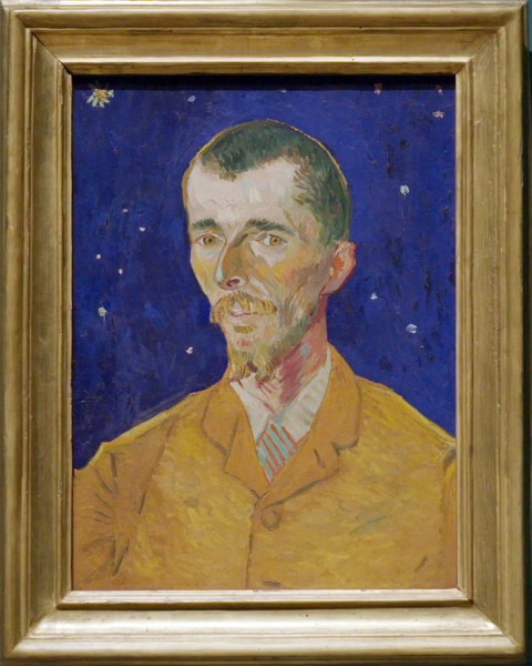A teremben középen elhelyezett másik kép egy költő-festőművészt ábrázol, Eugène Boch-ot. Van Gogh ezt írta róla testvérének, Theónak: „El akarom készíteni egy művészbarátom portréját, aki nagy terveket sző, aki akkor dolgozik, amikor a fülemüle dalol, mivel ilyen a természete. Ez az ember szőke lesz. Továbbá szeretném a festményben kifejezni az iránta való hálámat és szeretetemet. Hamarosan találkozni fogsz vele, a fiatal Dante-arcával. Hála neki, már van is egy első vázlatom arról a festményről, amiről már réges-régen álmodozom: a költőről. Kellemes arca, zöld szemű tekintete kiviláglik a csillagos, mélykék égbolt hátteréből. Rövid, sárga kabátja van, gallérja kifehérítetlen vászon. Színes nyakkendőt visel. Egy nap kétszer ült nekem modellt.” Van Gogh nemcsak festeni és rajzolni tudott, hanem fogalmazni is. Öccsének írott levelei a világirodalom részét képezik, a 19. század nagy jelentőségű irodalmi művei közé tartoznak. Eugène Boch arcképével Vincent egy költőtípust akart megfesteni, amint az a fenti leveléből is kiderül. Úgy vélte, Boch hasonlít Dantéra. Tegyük hozzá, nem éppen szép ember, de nem ez a fontos, hanem a lélek halhatatlansága.