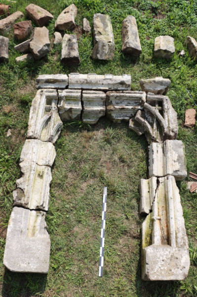 A kőfaragványokból sikerült kirakni egy újabb ajtókeretet is, és ez sokkal érdekesebbnek bizonyult az előzőnél, ugyanis olyan, úgynevezett szarvtagos ajtókeret szárait azonosította a művészettörténész, amelyek a román kori és kora gótikus építészetben ismert típushoz tartoznak, ám Erdély területéről egyelőre nem jeleztek ilyent, Máramarosban dokumentáltak eddig hasonlót. Úgyhogy ez a szarvtagos díszítmény az erdélyi régiségkincsbe Zetelakán keresztül kapta meg a belépőjét – fogalmazott Fehér János. Mint elmondta, ezek az ajtókeretek talán az első zetelaki templomnak (ennek viszont lehetett két fázisa is) lehettek a tartozékai, ugyanis a kőfaragványok közül ezek tekinthetők a legkorábbi daraboknak.