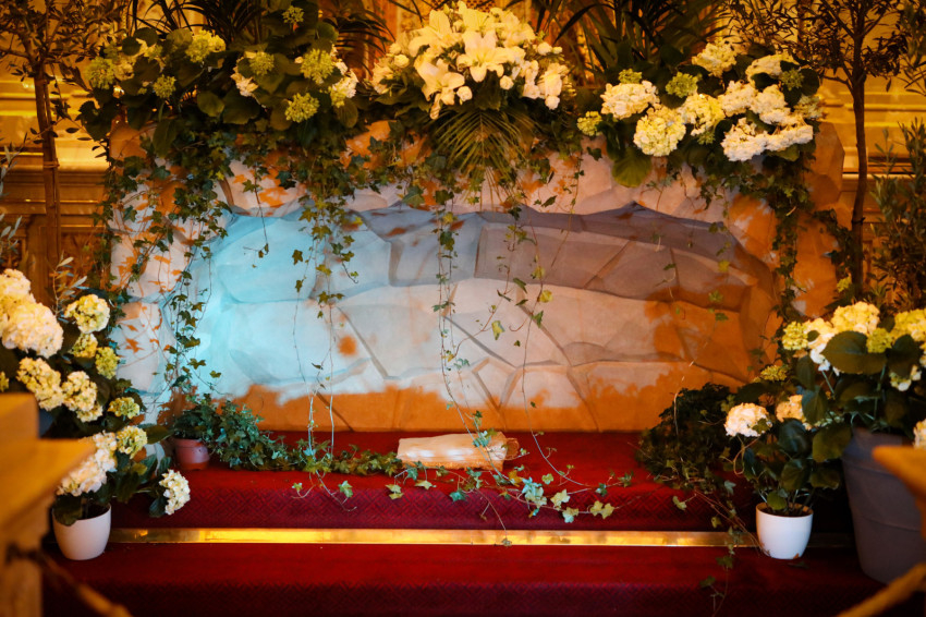 Szombat elmúltával, a hét első napján pirkadatkor Mária Magdolna és a másik Mária elment, hogy megnézze a sírt. És íme, nagy földrengés támadt: Az Úr angyala leszállt az égből, odament, elhengerítette a követ és ráült. Olyan volt a tekintete, mint a villám, a ruhája pedig fehér, mint a hó. Az őrök reszketni kezdtek félelmükben, és szinte halálra váltak. Ekkor megszólalt az angyal, és ezt mondta az asszonyoknak: „Ne féljetek! Tudom, hogy a megfeszített Jézust keresitek. Ő nincs itt, mert feltámadt, amint megígérte. Jöjjetek, nézzétek meg a helyet, ahol feküdt! És siessetek, mondjátok meg tanítványainak, hogy feltámadt a halottak közül, és előttetek megy Galileába. Ott viszontláthatjátok őt! Íme, én megmondtam nektek!”