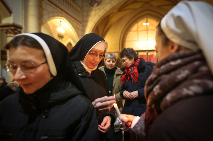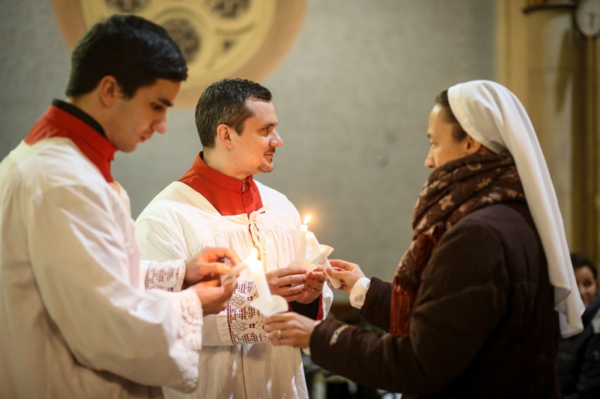 A szerzetesek, zömükben nővérek megújítják fogadalmukat, és mindannyian egy-egy mécsest visznek az oltár elé. Majd a mise után tanúságtételek következnek. Az első a domonkos Angelika nővéré, akit 18 éves korában azzal szólított meg az Isten, hogy „jöjj közelebb”. És noha egész más tervei voltak, és akkor még úgy gondolta, nincs módja még nagyobb istenközelségre, lassan-fokozatosan megértette, hogy „mindennap van egy közelebb”, ez életre szóló projekt. A második tanúságtétel egy házaspáré, Elviráé és Miklósé. Mint Versegi Beáta nővér elmondja: ez újdonság, korábban csak szerzetesek és egyedülállók beszéltek ilyenkor. A változtatás azt a szerzetesi szándékot fejezi ki, hogy a megszentelt élet napján nem csak a rendek tagjairól és a papokról van szó, hiszen Jézus bemutatása is egyfajta „családi program” volt. Jó más életállapotú emberekkel találkozni, együttműködni, egymás példáján felbuzdulni.