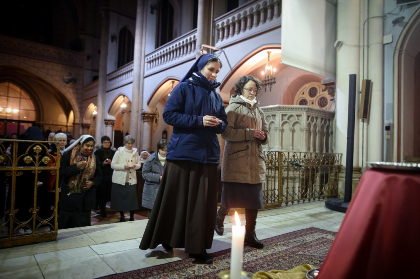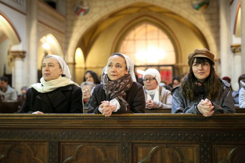 – Azért jöttünk ma ide – kezdi Nagy Bálint a prédikációt –, hogy hálát adjunk a hivatásokért: a szerzetesekért, a házasokért és az egyedülállókért. Hogy egy olyan térbe lépjünk be, ahol az a fontos, hogy az Isten mit tesz, és nem az, hogy mi mit teszünk. Sokfélék vagyunk, a meghívásunk azonban hasonló. A forráshoz akarunk menni, Isten országának jelenlétére próbálunk ráérezni; mindenki ott, ahol éppen van.