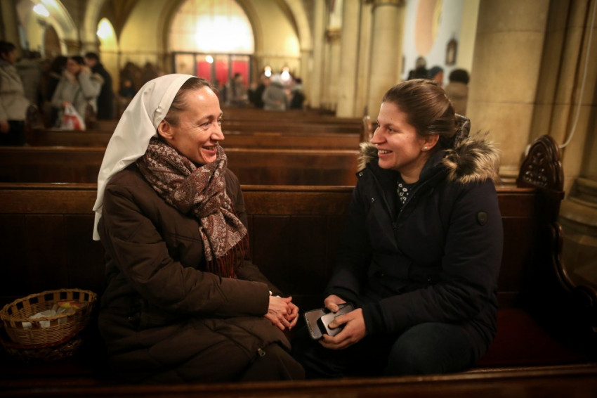 A templomba egy közeli hajléktalanszállón végzett szolgálatból rohanok át. A lábadozórészlegen szokatlanul jó a hangulat, vacsoraosztás közben élénk társalgásba keveredünk. Egy úr az idősotthonokat hozza szóba, a fő kérdések: hol mennyit kell fizetni, melyikbe hogyan lehet bejutni, és mi alapján érdemes közülük választani. „A legjobbak azok, ahol apácák gondoskodnak a lakókról – mondja ellentmondást nem tűrően. – Mert ők nem fizetésért, hanem hivatásból teszik. Mert egy dolog a fizikai ellátás, és egy másik a lelkület. De a lelkület az, ami mindent meghatároz.”
