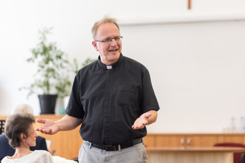 A jezsuiták házigazdájaként Forrai Tamás Gergely SJ, a Pécsi Katolikus Egyetemi Lelkészség lelkésze köszöntötte és közös imára kérte a jelenlévőket.