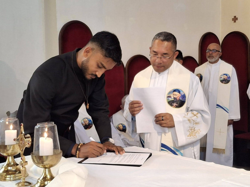 Ezután James Jimson Pullappallil SVD válaszolt a tartományfőnök kérdéseire, a Mindenszentek litániája alatt a földre borult, majd égő gyertyával a kezében ünnepélyesen letette örökfogadalmát.