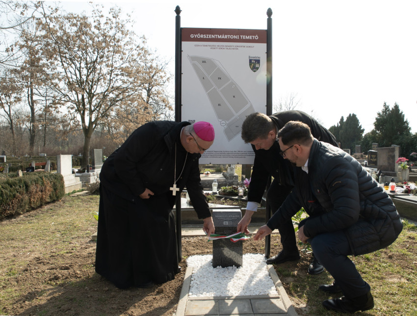 Győr-Moson-Sopron Vármegyét kormányhivatalának igazgatója, Kálmán János képviselte, aki beszédében párhuzamot vont a kommunista múlt és a jelenünk aggasztó eseményei között: „Ma, amikor emlékeznünk kell, ma, amikor a körülöttünk lévő világ, amelynek mi is a részei vagyunk, forr és remeg, amikor a háború nem a Közel-Kelet vagy a fejletlennek mondott világ valósága, hanem a mi realitásunk is, figyelnünk is kell. Figyelnünk, hogy emlékezhessünk. Az embertelenség, a kegyetlenség, a bűn és az erkölcstelenség nem csak a múlt náci és a kommunista rendszereinek az ismérve, hanem minden alapvető emberi jogot tiszteletben nem tartó rendszeré. Az előttünk álló személyes kihívások, a nemzetünk és az emberiség előtt álló sorskihívások elfogadásához azonban erős lélekre van szükség.”