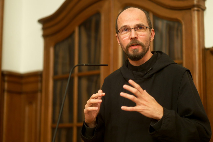 Motiválja-e mai fiatalt, a mai embert, hogy bölcs legyen? Tudjuk-e vonzóvá tenni számára a bölcsességet, amit a monasztikus hagyomány a mai napig fontosnak tart – indította bevezetőjét a bencés szerzetes. Az előadó megőrizte és felrázta a fogalom eredeti értelmét és kidomborította lényegi üzenetét; annak útját mutatta meg, hogyan szólíthatja meg az önsegítő pszichológiai irodalom bűvöletében élő embert a bölcsesség szeretete, az Istennel való élő kapcsolatból fakadó életmód követésének vágya, hogyan lesz a megküzdött belső szabadságból valódi látás a dolgok lényegéről és súlyáról, hogyan érti meg helyét a teremtett világban.