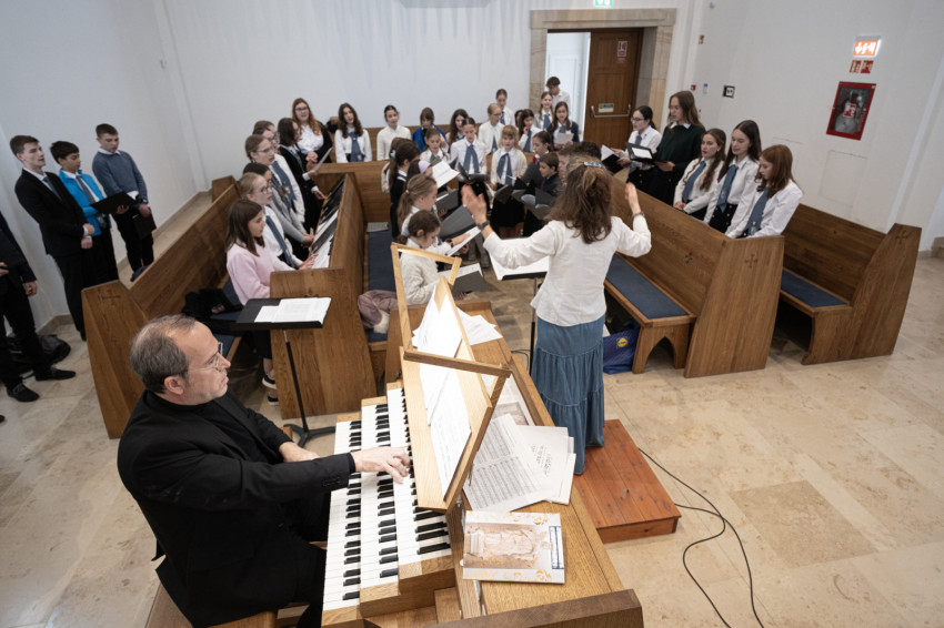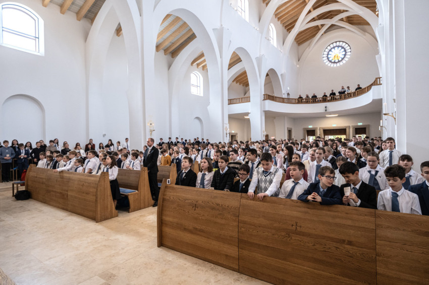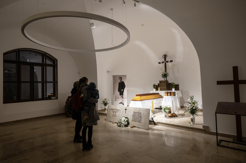 A szentmise végén a Premontrei Iskolaközpont diákjai levonultak az altemplomba, hogy leróják imádságos kegyeletüket száz évvel korábban élt iskolatársuk előtt.