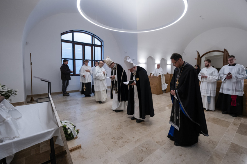 Október 22-én délelőtt a Premontrei Iskolaközpont közösségének részvételével zajlott Sopronyi Kálmánka és szüleinek újratemetése a templom kriptájában.