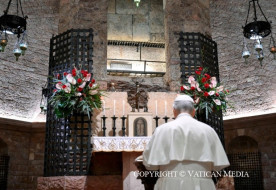 november 21. | 13:33Leó pápa Assisiben: Mozdítsuk elő a találkozás kultúráját, és váljunk a béke próféciájává!November 20-án délelőtt a Szentatya Assisibe utazott az Olasz Püspöki Konferencia november 17–20. között tartott nyolcvanegyedik közgyűlésének lezárása alkalmából. A püspökökkel való találkozó előtt XIV. Leó pápa Szent Ferenc sírjánál imádkozott. A találkozó után... »