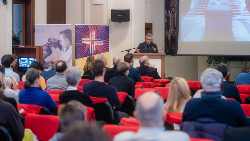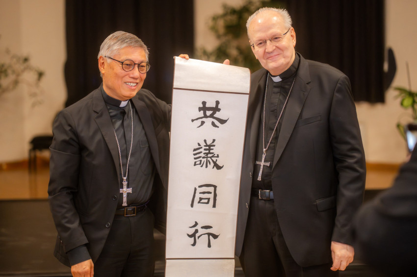 Előadása végén Stephen Chow Sau-Yan bíboros egy díszes, kézzel írt feliratot adott át Erdő Péter bíborosnak és a magyar jezsuitáknak, amelyen a szinodalitás szó olvasható kínaiul.