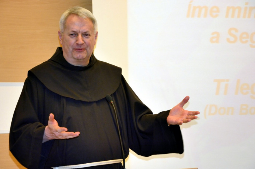 Várnai Jakab OFM, a Sapientia főiskola rektora kiemelte, hogy a nővérek jelenléte az országban az örömöt jelenti, az örömöt növeli. Mint mondta, aki nem kap neveltetést, abban kevesebb az öröm, aki nem igazodik el a világban, az szomorú lesz. Az öröm igazi esélye, ha jobban megértem, mi történik a világban, mi történik körülöttem. Nevelni azt jelenti, hogy több örömhöz juttatjuk az embereket – folytatta a rektor. A nővérek azonban örömöt hoznak azzal is, hogy szerzetesnők. Ez az önátadás öröme. Öröm odaadni életünket és úgy szolgálni. A szalézi nővérekkel való találkozás mindig az életnek örömmel való megjelenését jelenti – folytatta Várnai Jakab, majd hozzátette: a nevelésben is nagyon fontos az őszinteség és az élet örömmel való megismerése, megélése.