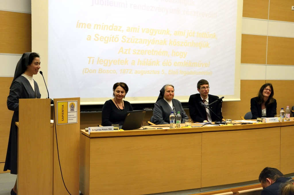 A szalézi család tagjai, szerzetesek, szerzetesnők, barátok, munkatársak jöttek el az ünnepi konferenciára. Elsőként Carolina Costabile nővér, a rend magyarországi elöljárója köszöntötte a konferencián megjelenteket. Hangsúlyozta, imáikban mindig jelen vannak mindazok, akik a régmúlt időktől napjainkig a nehézségek ellenére is a magyar fiatalok nevelésén és evangelizációján munkálkodtak. Hozzátette: az alapító száznyolcvanadik, a rend megtelepedésének nyolcvanadik évfordulója lehetőséget ad arra, hogy a múltat felidézzék, a nehézségekről beszéljenek, de arra is jó ez az alkalom, hogy felismerjék a nővérek, hol tartanak küldetésük teljesítésében.