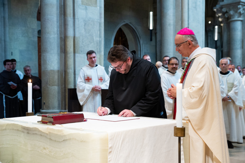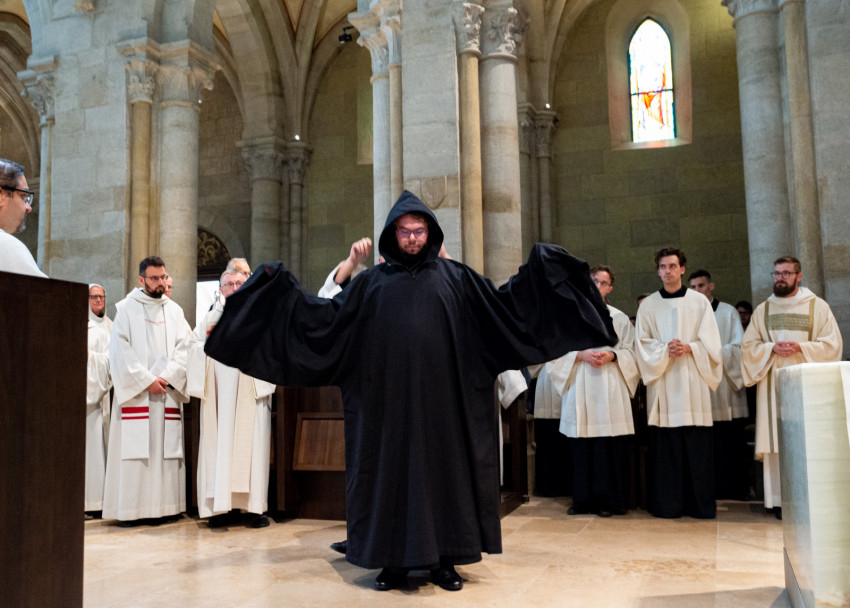 A zsoltárvers után a szerzetesszentelő imádság következett, majd Cirill főapát megáldotta a kórusruhát, a kukullát, amelyet Fülöp testvér magára is öltött, végül pedig a befogadás jeleként minden örökfogadalmas békecsókkal köszöntötte őt.