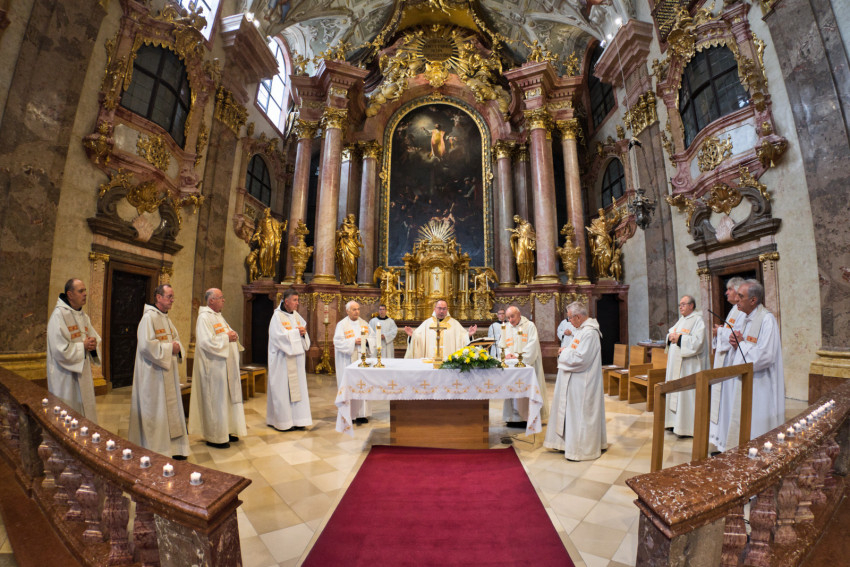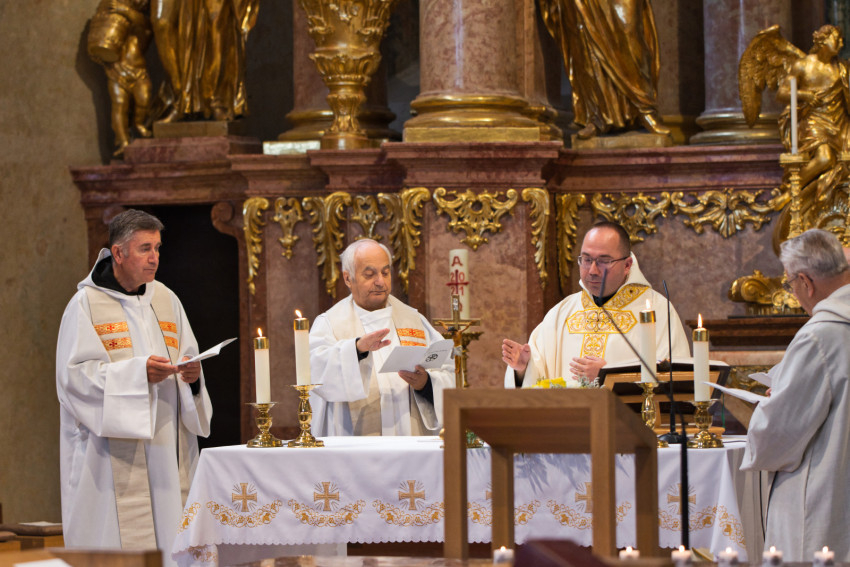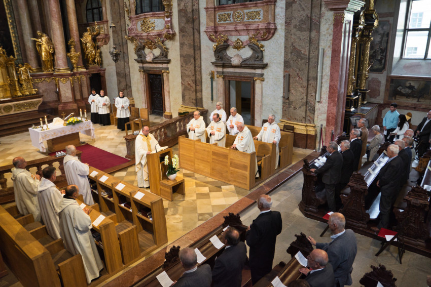 Az ünnepség szentmisével kezdődött, amelyet Sárai-Szabó Kelemen OSB perjel, a győri bencés közösség tagjai és az öregdiák papok celebráltak. A felajánláskor az osztályok gyertyát gyújtottak elhunyt diáktársaikra és tanáraikra emlékezve.