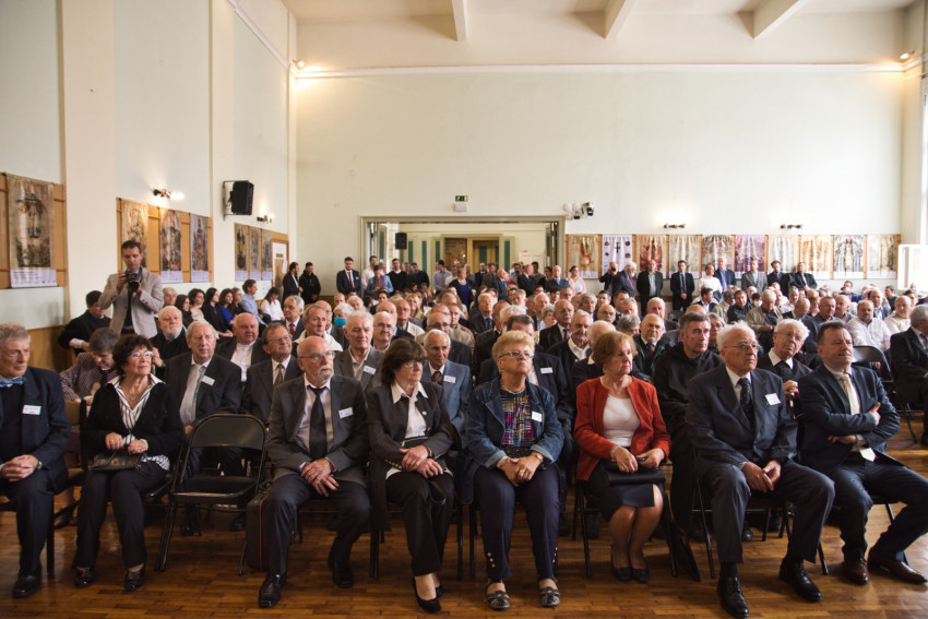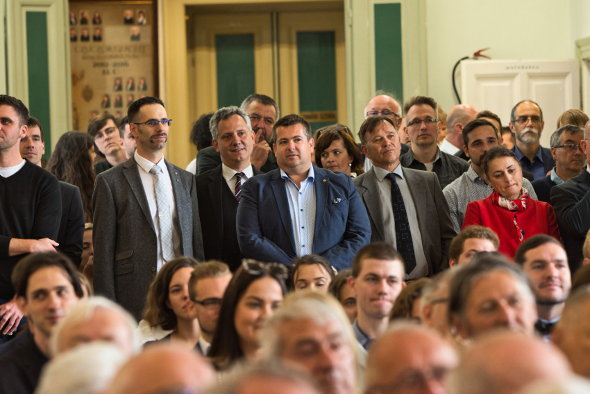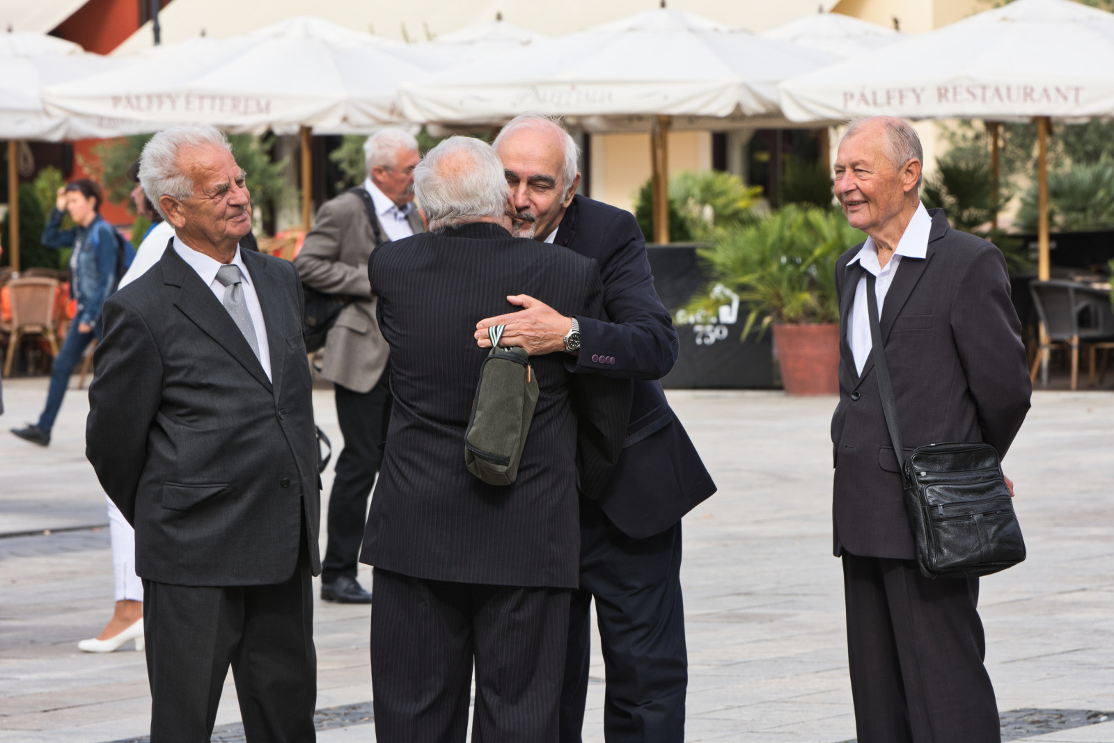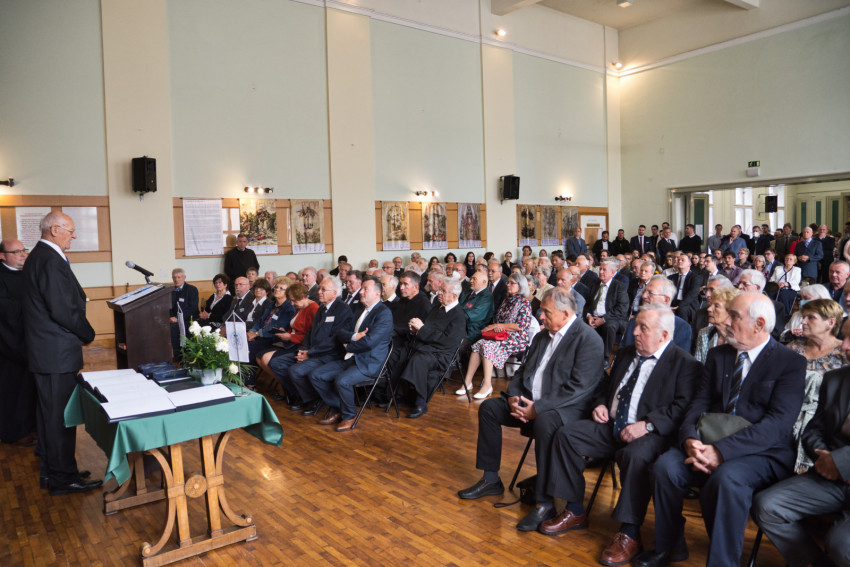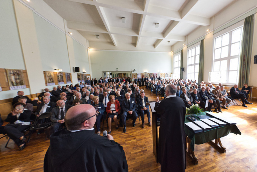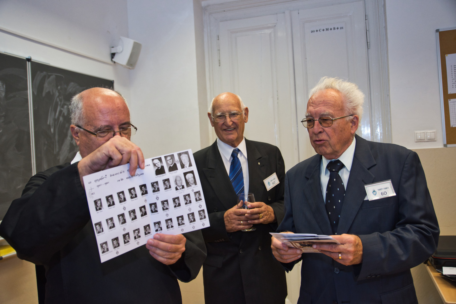 A találkozó a díszteremben folytatódott. A Himnusz eléneklése után ünnepi beszédet mondott a 60 esztendeje (1961-ben) érettségizettek nevében Pogány András, a 30 esztendeje (1991-ben) érettségizettek nevében Radó László.