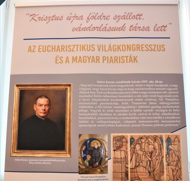 A múzeum új időszaki kiállításának különlegessége, hogy a szentév eseményeinek és gazdag tárgyanyagának bemutatása mellett a piarista rend, illetve a piarista diákok és iskolák szemszögéből jeleníti meg ezt a korszakot. Persze nagy számokkal a piaristáknál is találkozhatunk: a rend 100 hektoliter dörgicsei piarista bort ajánlott fel az eucharisztikus kongresszus szentmiséire, illetve a vendég bíborosok számára annyi mádi máslás bort, „amennyire csak szükség lesz”. A budapesti rendház több mint hetven vendéget fogadott a kongresszus idejére, így úrnapján például nyolcvanhat szentmisét mutattak be az ifjúsági kápolnában. Az iskolai évkönyvek, illetve a historia domusok, a rendházak krónikáinak beszámolói viszont inkább arról tanúskodnak, hogy a szerzetesközösség csendes, alázatos munkával és a diákság bölcs, pozitív szemléletű bevonásával készült és vett részt a monumentális rendezvénysorozaton. A piarista szerzetestanárok rengeteg prédikációt, triduumot, konferenciabeszédet tartottak, illetve gyóntattak; az iskolai buzdítások, pályázatok, kirándulások, zarándoklatok alkalmával pedig igyekeztek közelebb segíteni a diákokat az Eucharisztiában jelen lévő, élő Krisztushoz, és a nemzeti örökség értékeihez.