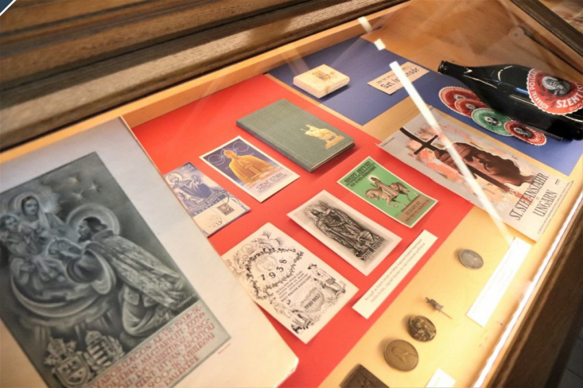 A Piarista Múzeum időszaki kiállítása Okrutzky Erzsébet ötvöstárgyai mellett az 1938-as kettős szentév bélyegeken, képeslapokon, plakátokon megjelenő grafikai alkotásait, a korabeli sajtó beszámolóit, az eucharisztikus kongresszus és a Szent István-év változatos emléktárgyanyagát is bemutatja, de István király kultuszának a hétköznapi életet átjáró megnyilvánulásaira is reflektál, így kerülhetett a vitrinekben egymás szomszédságába egy, az eucharisztikus világkongresszus jelvényével ellátott rózsafüzértok és öngyújtó, illetve egy zománcképekkel díszített kehely és a Kőbányai Polgári Serfőző Rt. Szent István márkájú sörösüvege.