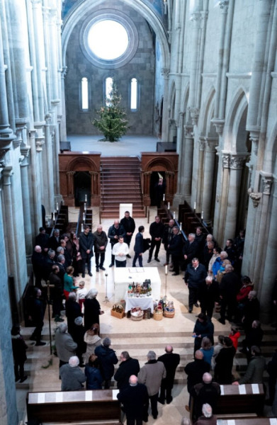 „Urunk és Istenünk, Te a bort mint a föld termését és az emberi munka gyümölcsét ajándékozod nekünk. Fiad, Krisztus a bort választotta az Újszövetség jeleként, vére számára. Áldd meg ezt a bort, amelyet Szent János apostol tiszteletére iszunk meg. Engedd, hogy megtapasztaljuk, te vagy az Isten, aki az ember szívét megvidámítod, és közösséggé formálsz bennünket.” Ezzel az imádsággal fordult az Úrhoz Hortobágyi T. Cirill főapát, miközben megáldotta az oltár elé helyezett borokat.