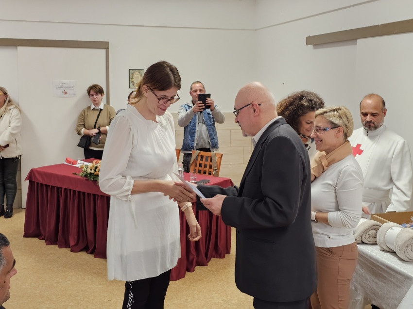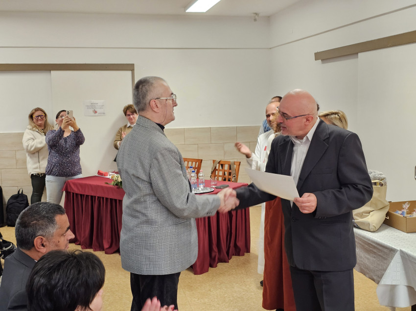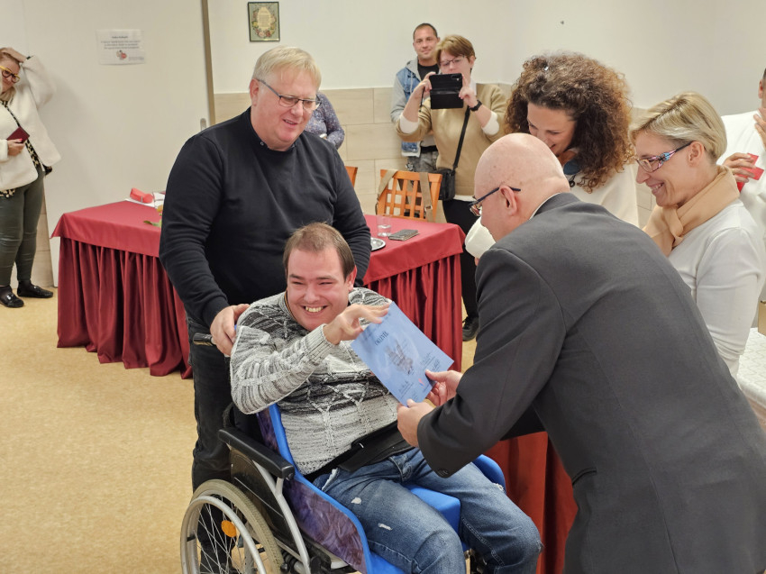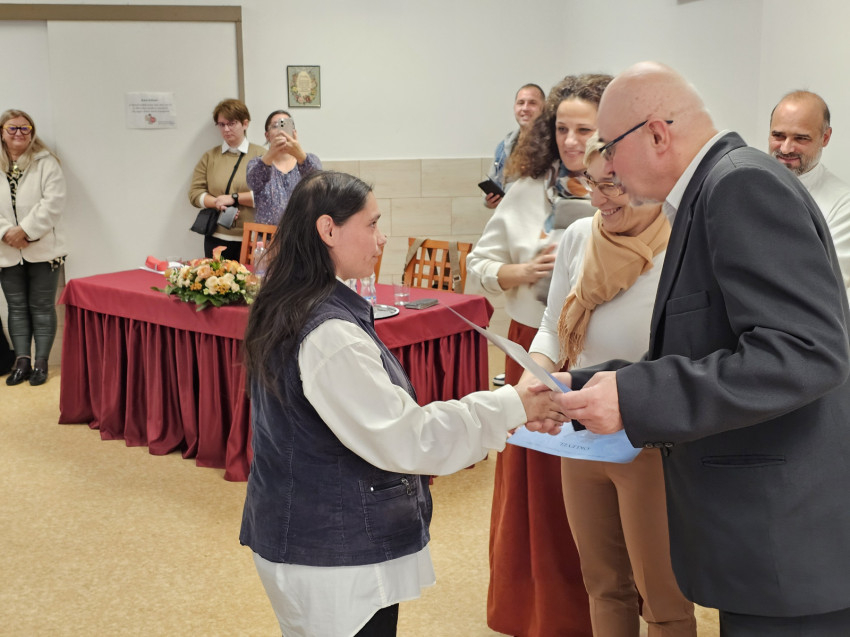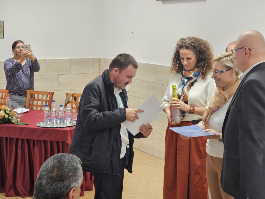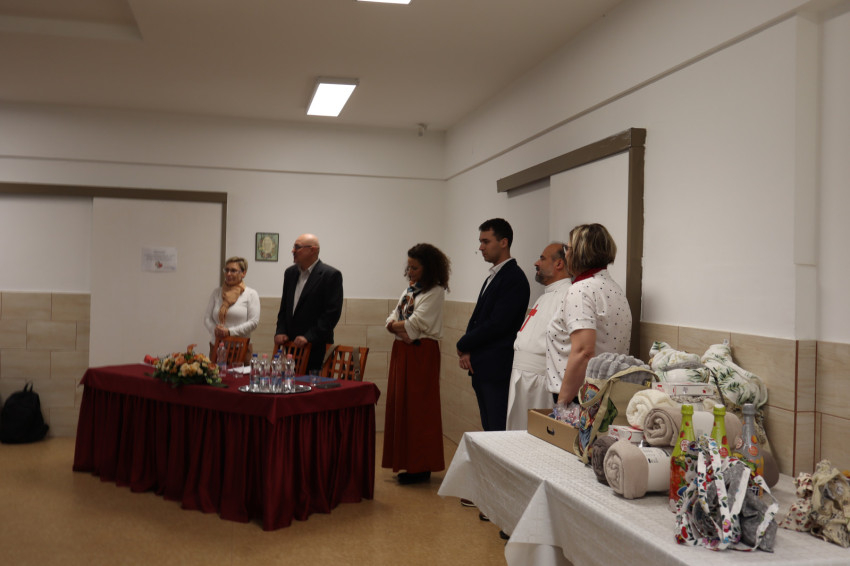 Az intézményvezető a Szent Kamill Rehabilitációs Központ fejlesztő foglalkoztatásában részt vevő gondozottak által készített termékcsomaggal, valamint borral és virággal köszönte meg a zsűri munkáját, amelyet a vendéglátó gondozottak adtak át a zsűri tagjainak.