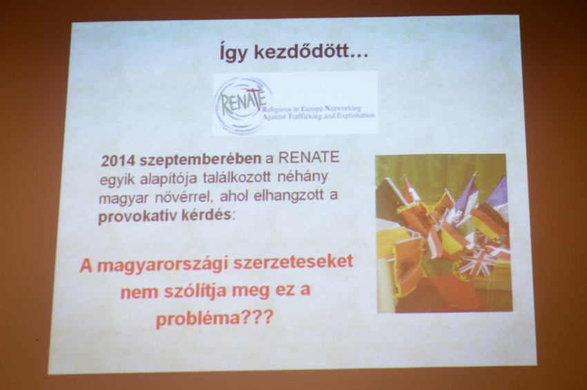 Légrádi Gabriella nővér, a magyar egyesület elnöke elmondja, milyen indítást kapott ehhez a küldetéséhez sok évvel ezelőtt. Amikor Bázelben egy védett házban töltötte a szerzetesi gyakorlatát, egy oda menekült afrikai nővel való találkozás mélyen megérintette. Beszélni nyelvismeret híján nem tudott vele, de beszéltek helyette a könnyei, amelyek azon a pár napon át, ameddig ott volt, szinte egyetlen percre sem álltak el.
