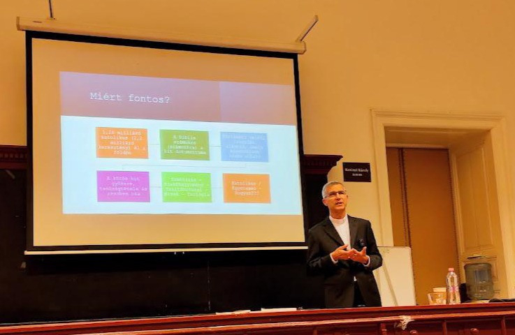 Martos Levente Balázs püspök beszélt a hallgatóknak Ferenc pápa Fratelli tutti kezdetű enciklikájáról, melyben központi szerep jut az irgalmas szamaritánusról szóló példabeszédnek (Lk 10,25–37). Egy találkozás története, melyben egy másik találkozás története hangzik el; egy elvi tétel az egyik, egy konkrét találkozás a másik.
