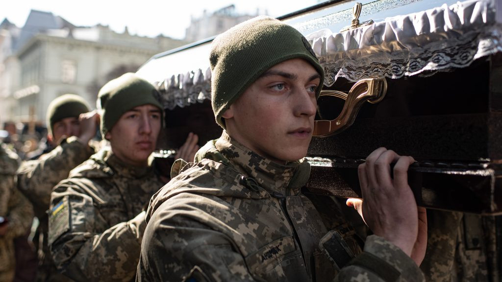 Utolsó útjára kísérik katonatársak az elhunytat (Lviv)